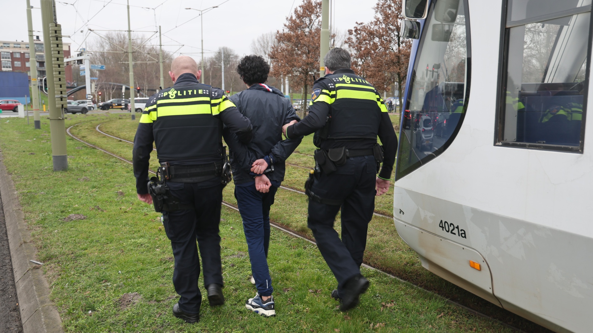 Op de Noordelijke Randweg, bij het einde van de Vliettunnel, heeft de politie vrijdagmiddag 27 februari na 14.00 uur twee jongens uit tram 19 gehaald voor verhoor.