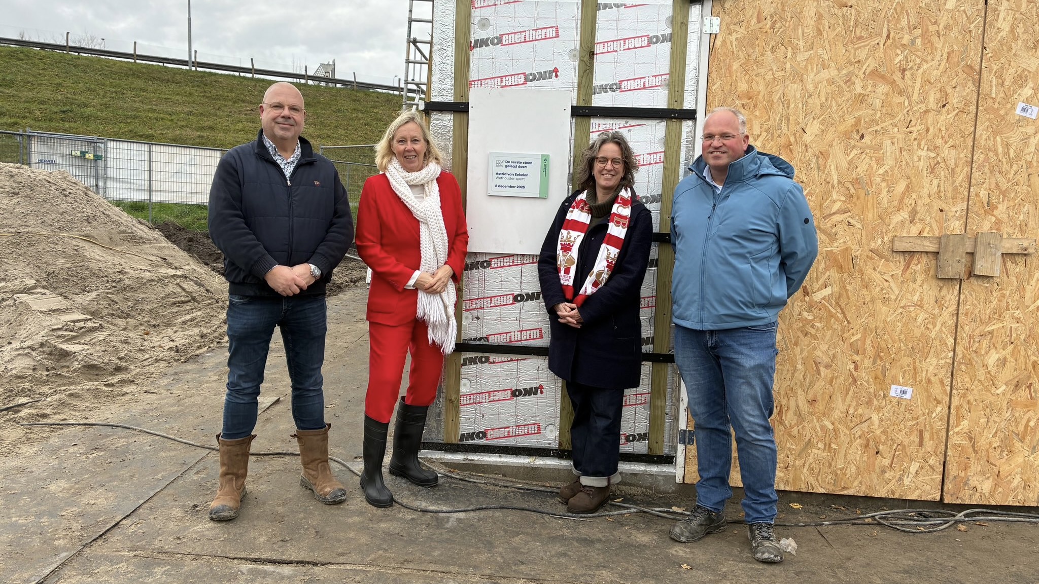 Met het leggen van de eerste steen door wethouder Astrid van Eekelen is woensdag 10 december de bouw van het nieuwe kleedkamergebouw voor de Voorburgse Rugby Club officieel gestart.