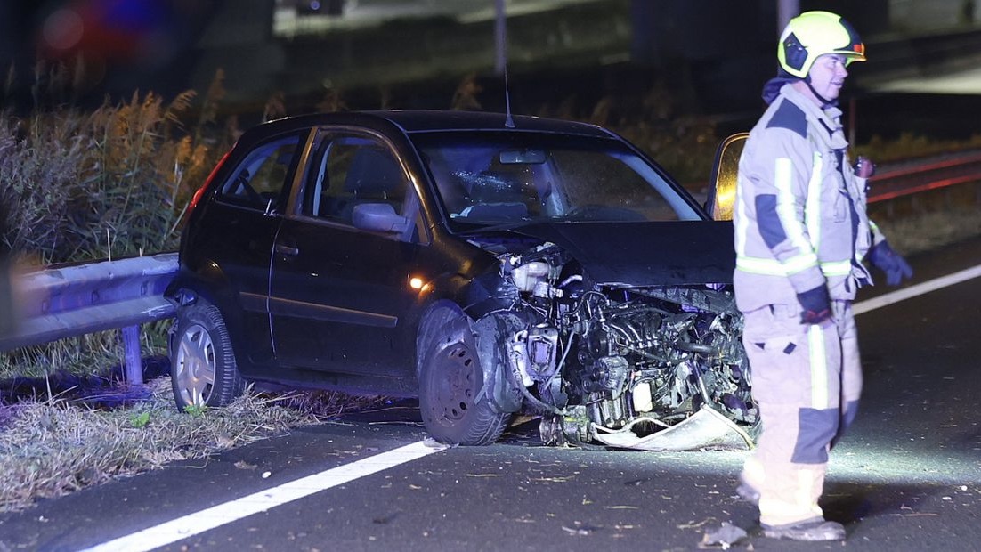 Op de parallelweg van de A4 naar de A12 ter hoogte van Leidschendam zijn afgelopen nacht twee auto’s op elkaar gebotst.